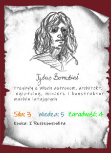 Tytus Liwiusz Boratini to Włoch, który osiadł w Polsce, mincerz, naukowiec, archeolog i konstruktor… Prowadził wykopaliska i pomiary w Egipcie, niestety nie zachowały się zapiski z jego badań. Fachu mincerza uczył się w Wiedniu, po czym przybył do Krakowa, a potem Warszawy. Był dzierżawcą mennicy koronnej w latach 1659–66 wybijał szelągi miedziane zwane boratynkami. W Ujazdowie stworzył obserwatorium astronomiczne. Znany jest też z prototypu maszyny latającej w kształcie smoka zwanej ornitopter! Zajmował się też optyką, poprzez własnoręcznie zbudowany teleskop odkrył plamy na Wenus. Do końca życia służył swojej nowej ojczyźnie, zaangażowany był w obronę Rzeczypospolitej w dobie potopu szwedzkiego. Nadano mu szlachectwo za zasługi.