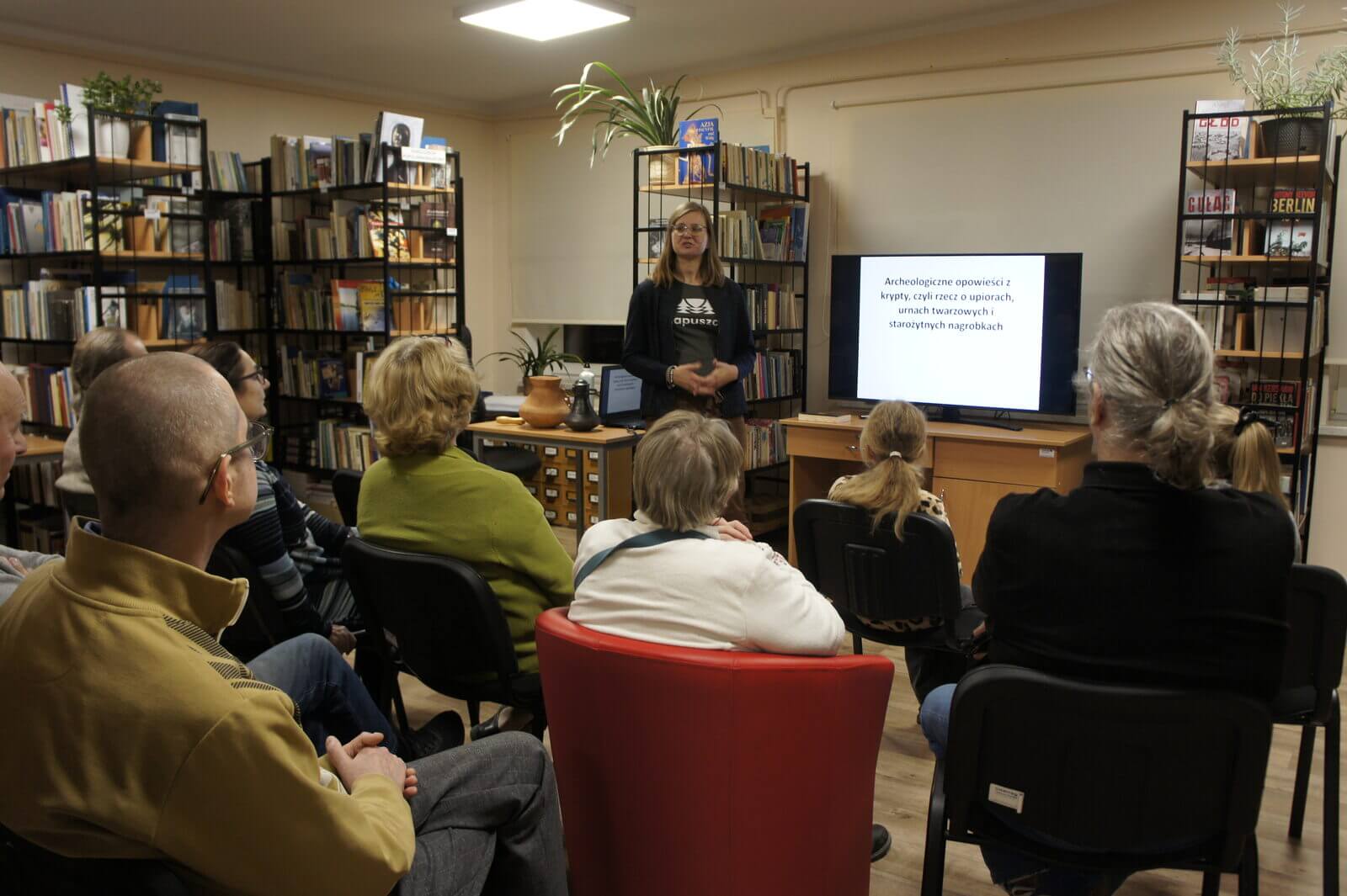 Prelekcję pt. „Archeologiczne opowieści z krypty, czyli rzecz o upiorach, urnach twarzowych i starożytnych nagrobkach” przedstawiła nasza koordynatorka projektów edukacyjnych Monika Radzikowska. Wydarzenie gościła ponownie biblioteka w Gminne Centrum Kultury w Kowalach Oleckich.