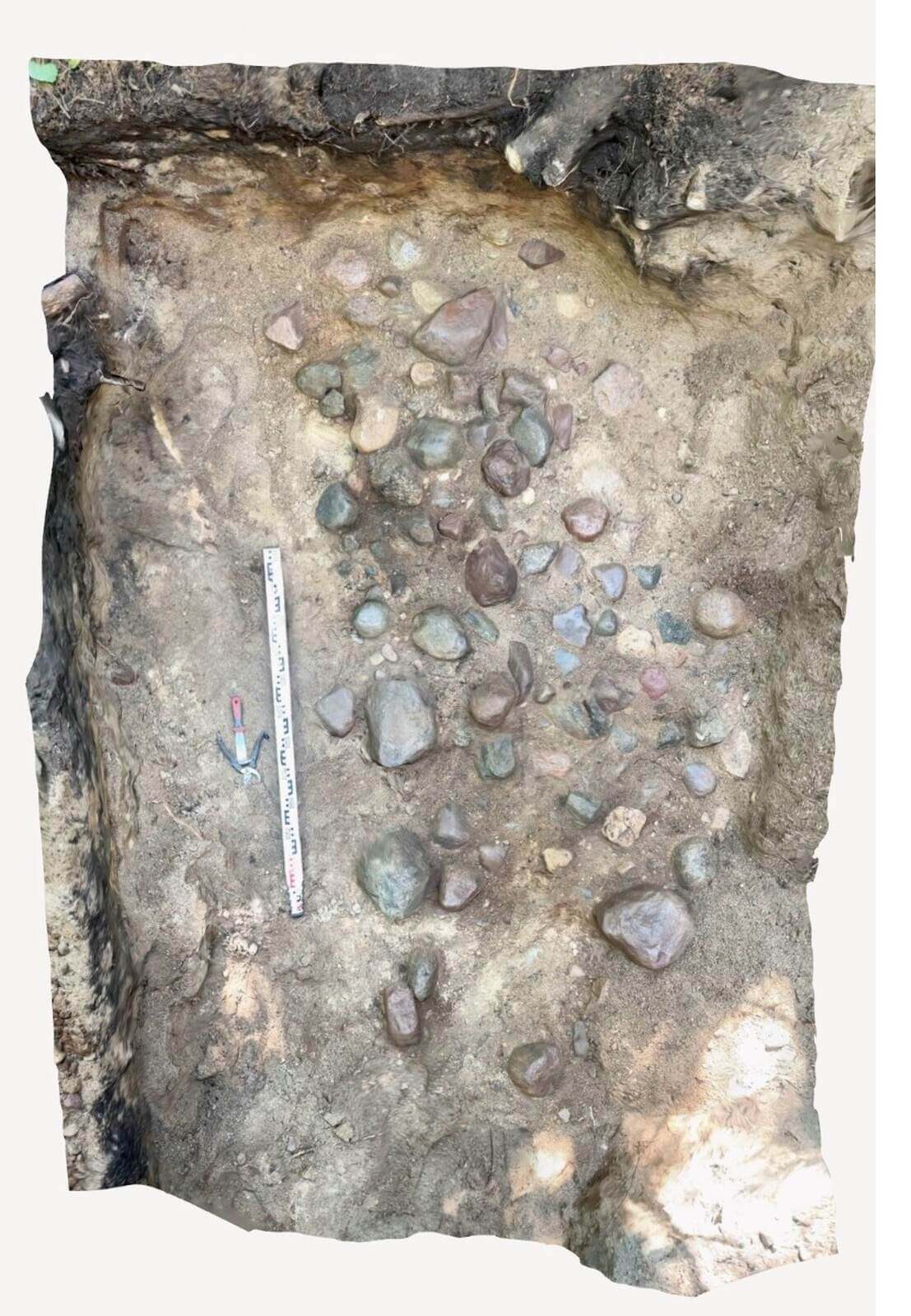 Kończymy też obiekt będący dużym prostokątnym piecem z grubymi na ok. 20 cm bocznymi ścianami i zapadniętym sklepieniem. W innym wykopie zarejestrowaliśmy ułożony z kamieni zagadkowy prostokątny bruk. W kolejnym z wykopów pod rozległą warstwą polepy natrafiliśmy na dwie głębokie jamy, przy czym jedna z nich zawierała kości i zęby zwierzęce, ponadto w spodniej części jest otoczona kamieniami. W przypadku drugiej jamy więcej będziemy mogli powiedzieć po zakończeniu eksploracji.
