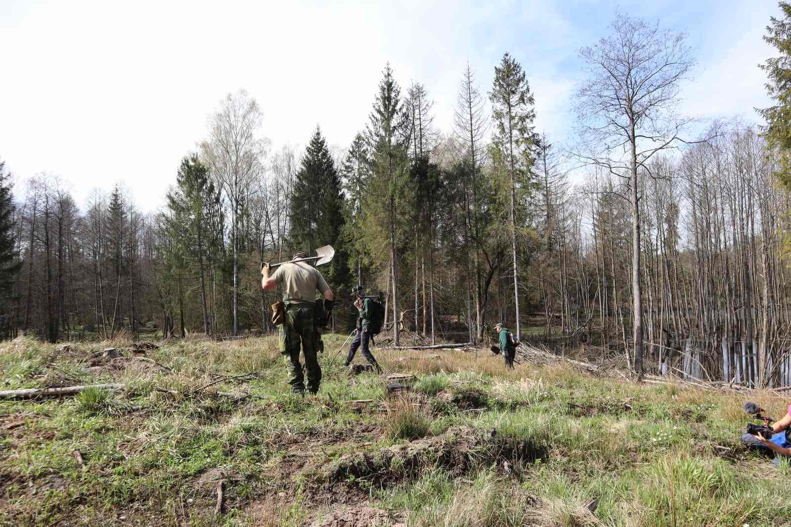 Niestety w trakcie eksploracji często wszystkie te elementy ulegają erozji, a czasem nawet degradacji. Okazuje się bowiem, że teren… i tu niespodzianka… wygląda inaczej niż zakładaliśmy. Wytypowane na mapach miejsca – wydawałoby się z przenikliwością – są albo zbyt wysoko położone albo zbyt nisko. Zbiorniki i cieki wodne nie są takie jak sobie wymarzyliśmy lub ich w ogóle nie ma. Na dodatek z zaskoczeniem stwierdzamy, że… drzew jest dużo za dużo, gleba nie chce dać się kopać, a poszycie leśne nas nie lubi. W odróżnieniu niestety od zalegających w nim kleszczy. Zbyt często teren jest trudno dostępny lub w ogóle niedostępny, a gdy już wkroczymy na dogodniejszy to się okazuje, że wykopujemy na ogół złom, który w dodatku wypada teraz ze sobą transportować. Śmieci nader często jest tak dużo, że w efekcie wykrywacz od sygnałów szaleje, a my stopniowo razem z nim. Dla odmiany bywa też, że nie daje żadnych sygnałów, co skłania nas do podejrzeń… że pupil o zgrozo się popsuł. Przemierzamy zatem kilometry i hektary puszczy, a wraz z nami coraz bardziej zaprzyjaźnione kleszcze i im podobne stwory. Na szczęście zdarza się nam też trafić na żubry, dziki, jelenie, sarny, łosie i inne sympatyczne czworonogi, które jednak dla odmiany od kleszczy, nie szukają naszego towarzystwa. W tych momentach zwątpienia i dezorientacji (nawiasem mówiąc zdarza nam się rzeczywiście pobłądzić w lesie) wiemy jednak, że możemy liczyć na wyrozumiałość kierowniczki projektu argumentującej iż, tu cytat “brak informacji to też informacja!” Z tak podbudowanym morale nie pozostaje nic innego jak rozpaczliwie kontynuować poszukiwania.