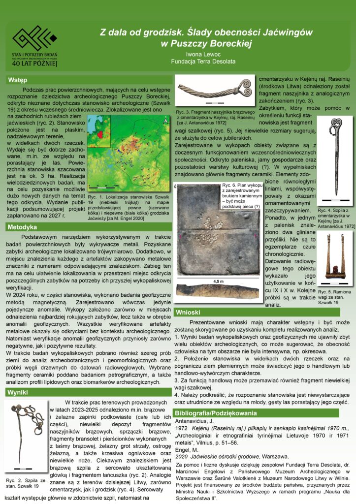 W sekcji Odkrycia-Postery Iwona Lewoc przygotowała poster pt. „Z dala od grodzisk. Ślady obecności Jaćwingów w Puszczy Boreckiej”.