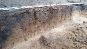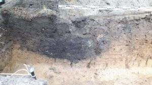Ponadto nie przyniosły rezultatów szeroko zakrojone detektorystyczne poszukiwania nekropolii. Stanowisko znajduje się na rubieżach Jaćwieży, nie posiada jednak żadnych, nawet najskromniejszych śladów umocnień. Położone natomiast jest w miejscu, w którym sądzimy, że przecinały się lokalne szlaki. Przeprowadzone na nim pomiary geofizyczne również dały skromne wyniki, w postaci tylko dwóch wyraźniejszych anomalii. I właśnie te wskazania aktualnie eksplorujemy, w efekcie czego w jednym z wykopów natknęliśmy się na obiekt wstępnie przypominający piec bądź palenisko. Wśród zgromadzonych kamieni obserwujemy liczne ślady węgli oraz gliny, a także przepaloną wokół warstwę ziemi z wieloma zagłębieniami wypełnionymi spalenizną.