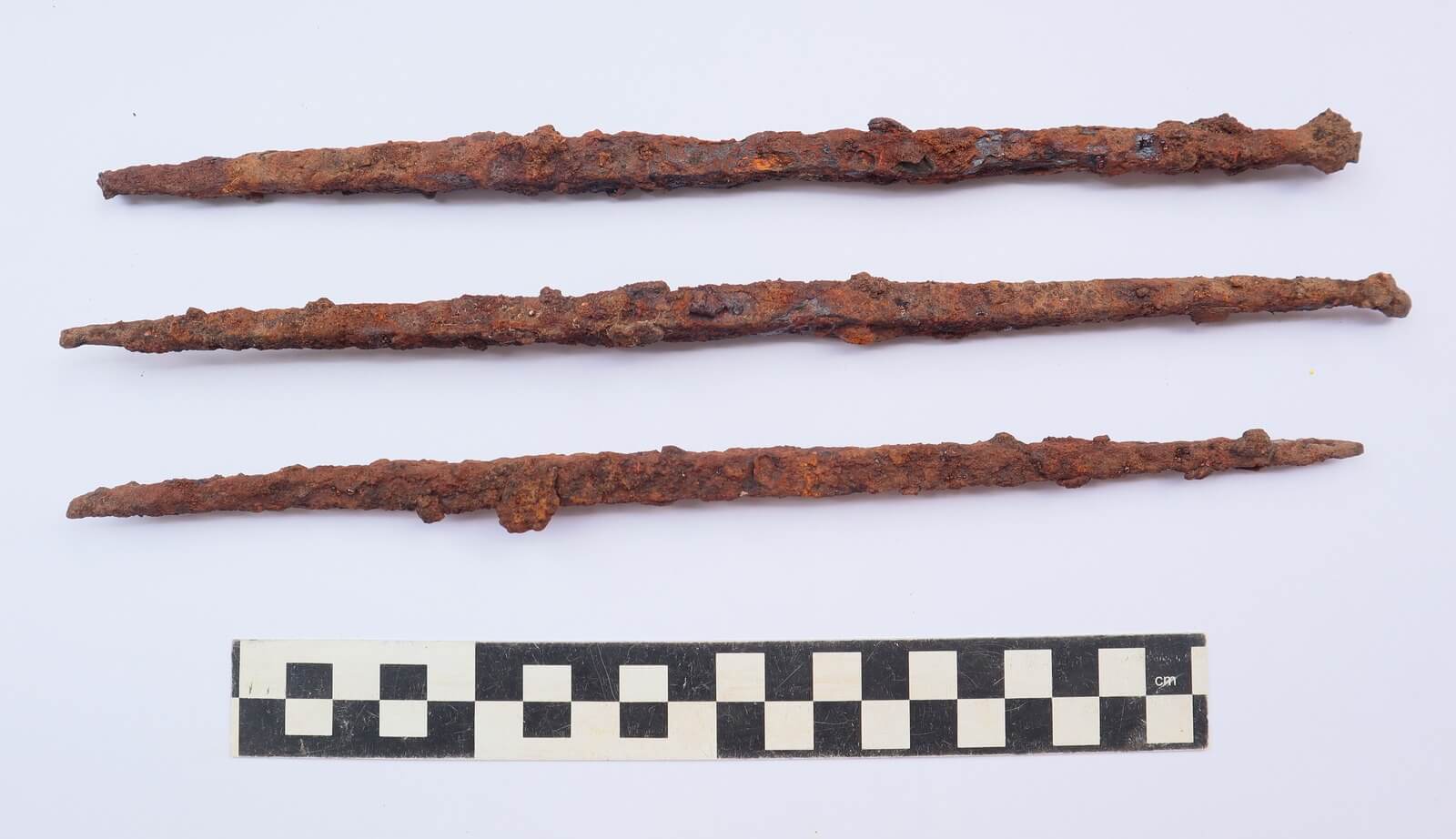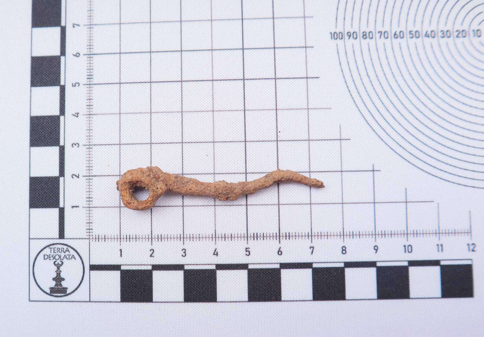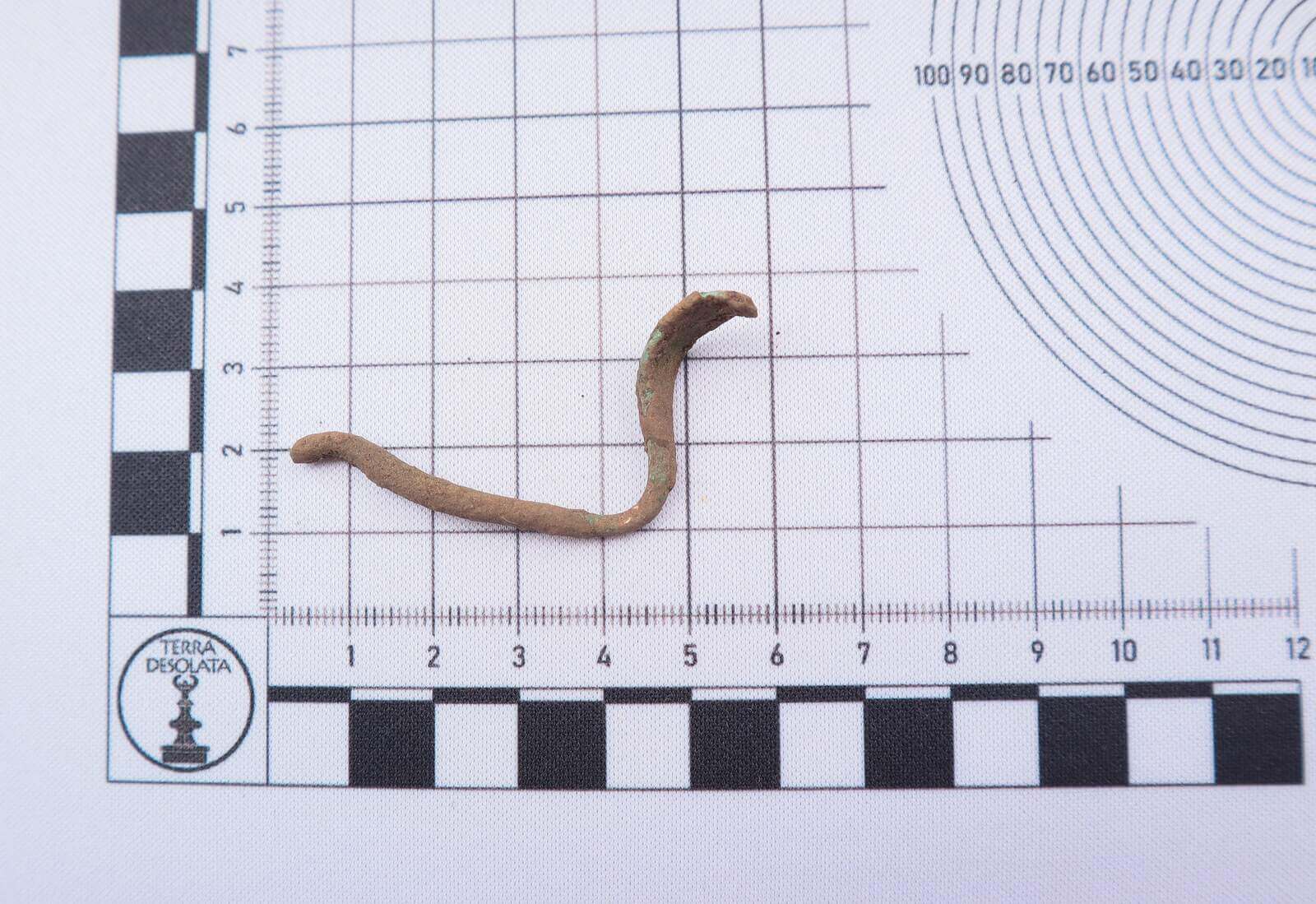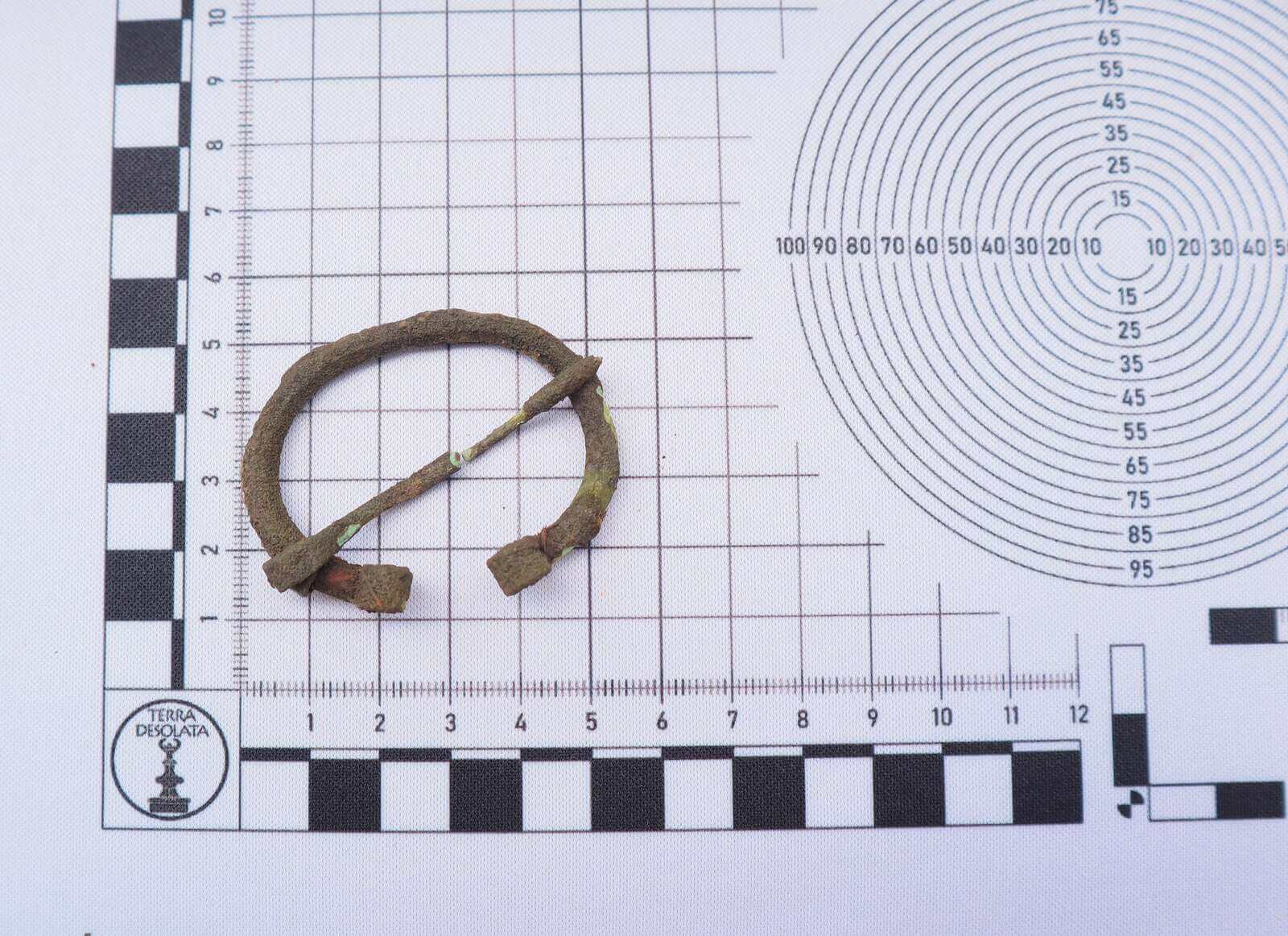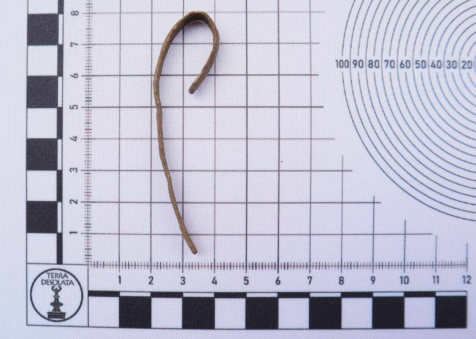 Druga konkluzja również wiąże się z odkrytymi paleniskami, a przede wszystkim z jednym z nich, dla którego uzyskaliśmy daty radiowęglowe. I tutaj mamy do czynienia z chronologiczną ciekawostką, gdyż zostało ono wydatowane na ok. II wiek p.n.e., czyli wczesną epokę żelaza! Tym samym jest starsze od Jaćwieży, o minimum 1000 lat. To nieco zaskakujące dane, lecz odpowiadające pewnym naszym wcześniejszym obserwacjom, wynikającym z pozyskiwania w niektórych wykopach fragmentów ceramiki o cechach wcześniejszych niż jaćwieska. Nie udawało nam się natomiast trafiać na inne dowody tej starszej obecności, aż do ostatnich wykopalisk, kiedy to znaleźliśmy część żelaznej szpili, którą identyfikujemy jako zabytek wczesnożelazny. Te połączone dowody, w sensie poznawczym wzbogacają wartość stanowiska, czyniąc je dwukulturowym. Z tego powodu w niedalekiej perspektywie wrócimy na to miejsce i bogatsi o wyniki specjalistycznych analiz postaramy się doprecyzować jego charakter w czasach przed n.e.