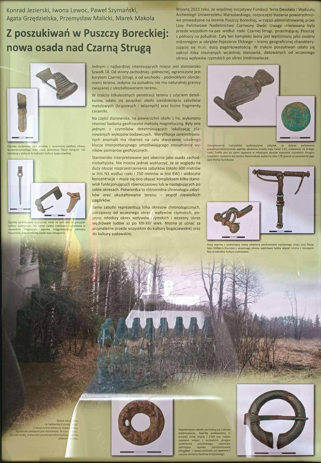 W dniach 6-7 października 2023 r. odbyła się konferencja naukowa pt. „50 lat minęło. Co dalej z kulturą sudowską?” organizowana przez Muzeum Okręgowe w Suwałkach, Państwowe Muzeum Archeologiczne w Warszawie oraz Wydział Archeologii Uniwersytetu Warszawskiego, w partnerstwie z GovTech Polska. Członkowie naszej fundacji wzięli udział w sesji posterowej z posterami pt. „Z poszukiwań w Puszczy Boreckiej: nowa osada nad Czarną Strugą” oraz „Tworki Skrodzkie. Bałtyjska osada nad Jeziorem Rajgrodzkim”.